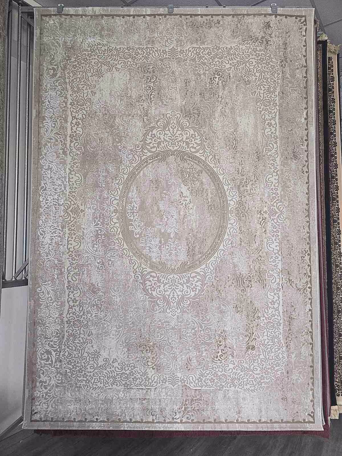 Ανάγλυφο πολυτελές χαλί μεταξωτής υφής, 100% αλέκιαστο σε χρώματα νουντ μπέζ που προσφέρουν οπτική καθαρότητα και αρμονία στον χώρο.